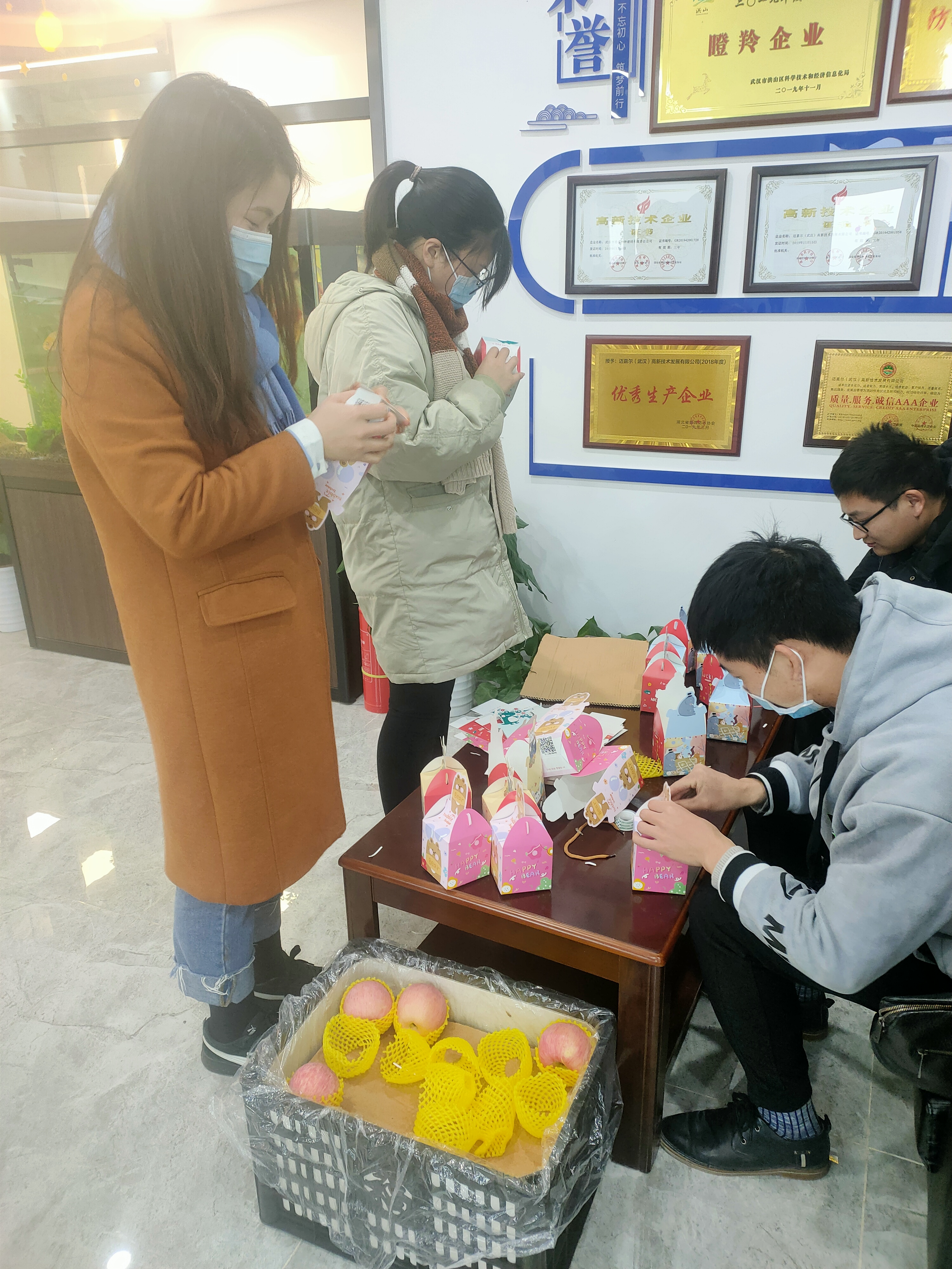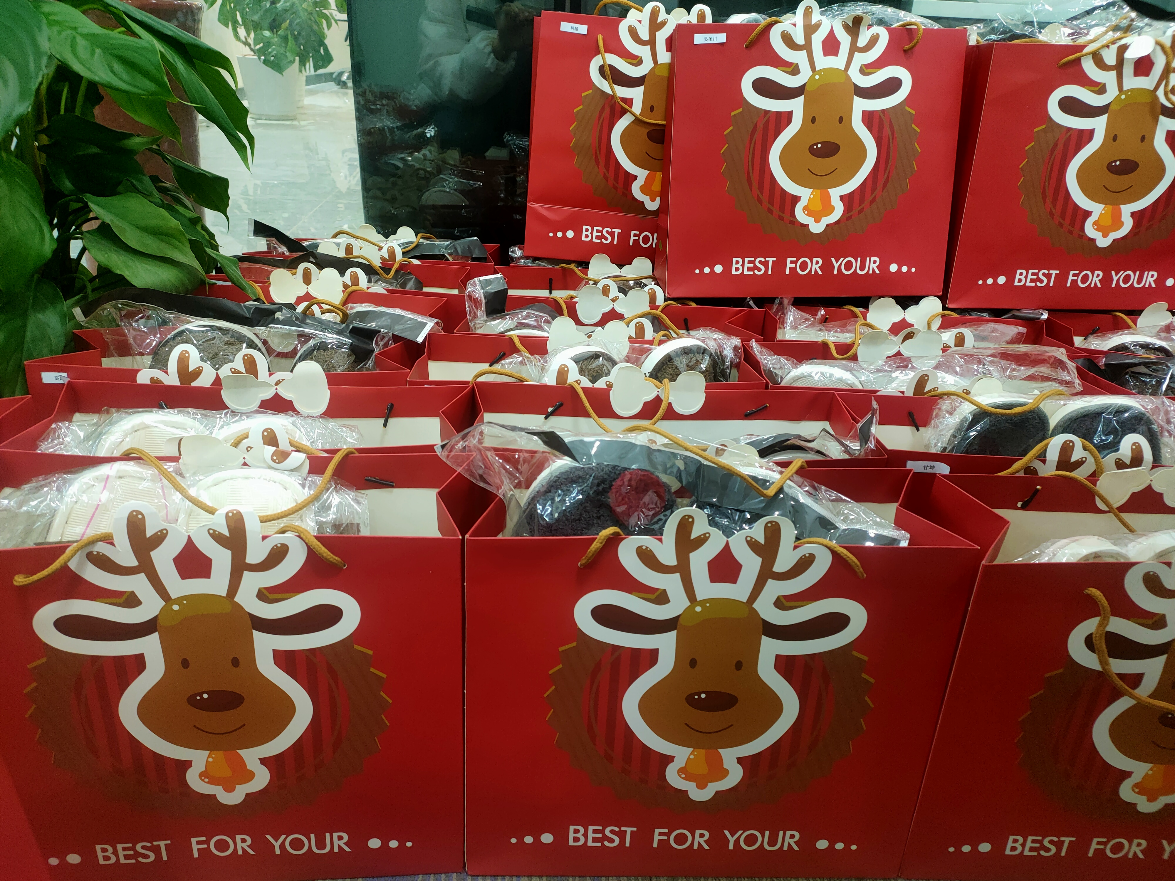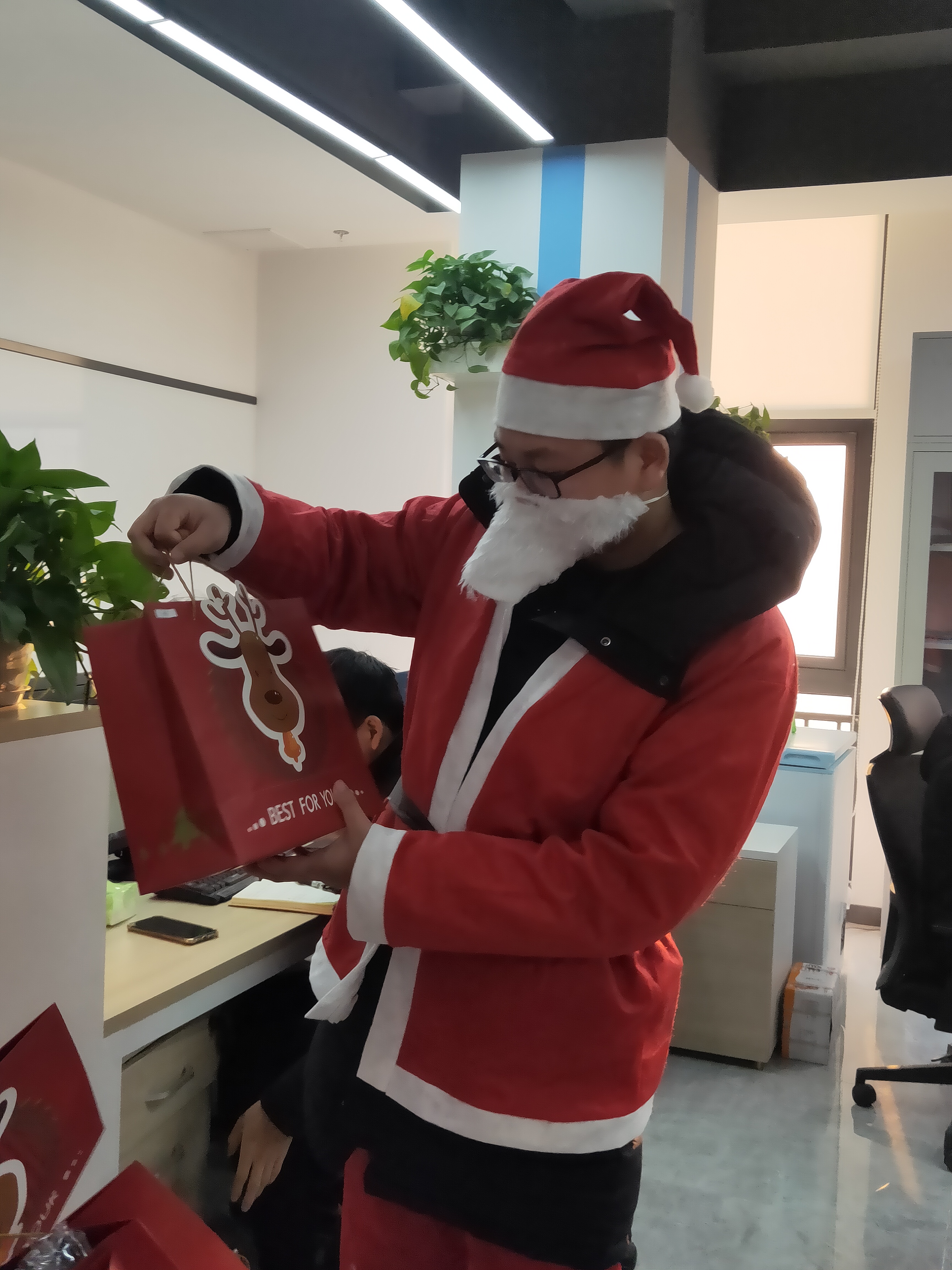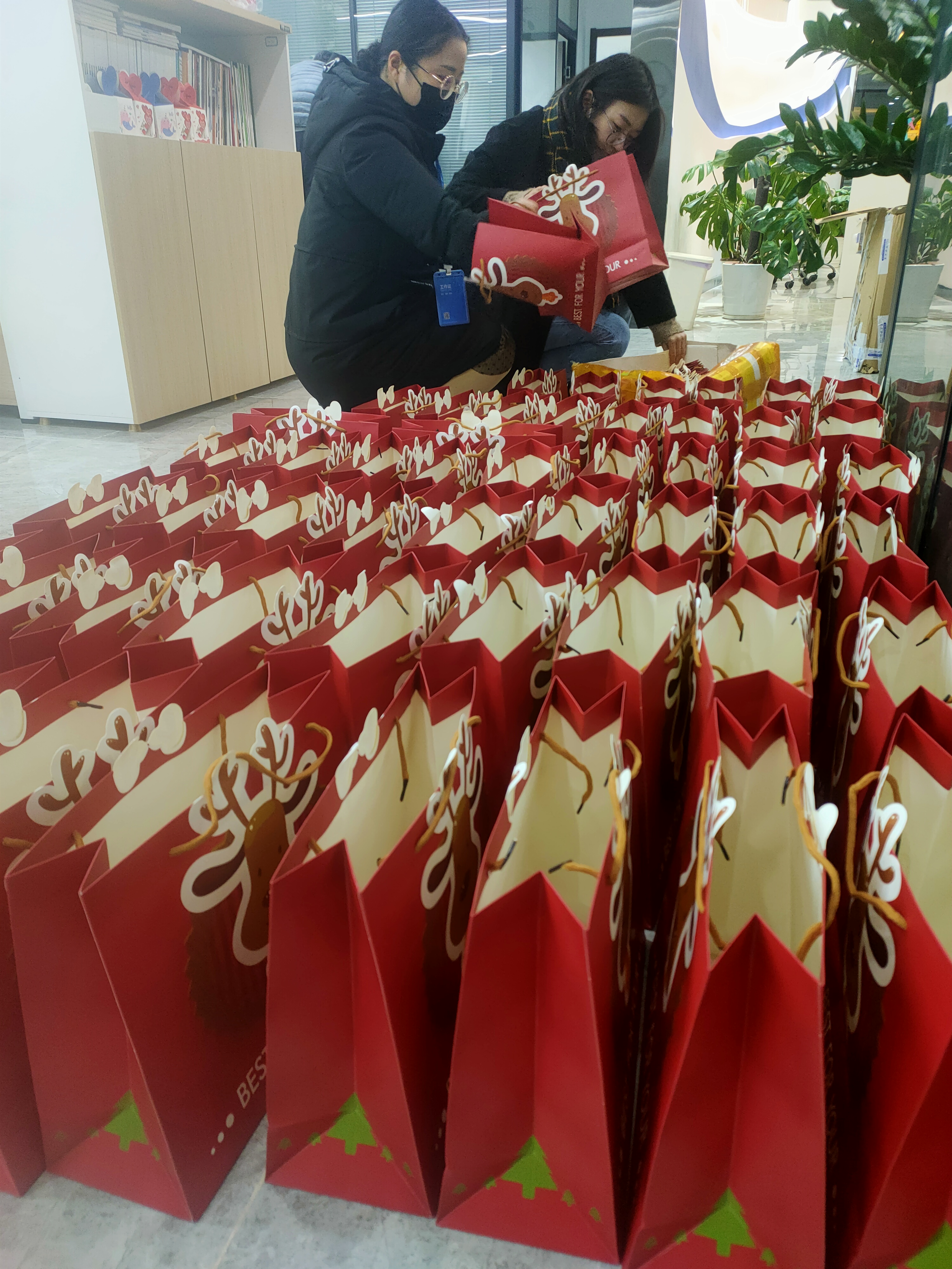在发放至每一位同事手中前,每一份礼物都需要经过最后一道包装流程,才能合格出厂。也多亏这些积极踊跃参与包装的小伙伴,让圣诞节礼物能够顺利准备妥当。
